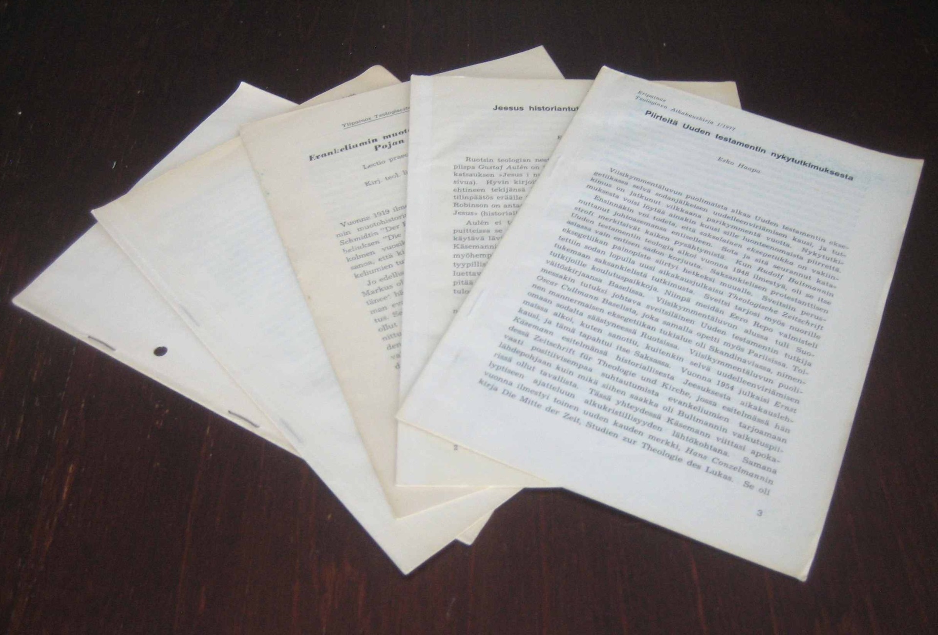 5. Piirteitä Uuden testamentin nykytutkimuksesta. Eripainos Teologinen aikakaukirja 1/1977.
