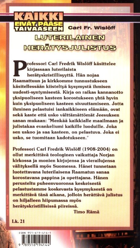 • Nimike: Kaikki eivät pääse taivaaseen: luterilainen herätysjulistus