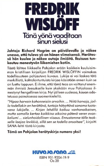Wislöff, Fredrik 1989: Tänä yönä vaaditaan sinun sielusi